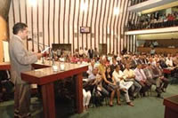 "Trouxemos aqui, nesta sessão, engenheiros, tecnólogos, estudantes, políticos, técnicos e empresários para nos organizar, nos preparar para que cheguemos na frente", disse, convocando a todos: "Vamos antecipar o futuro!". De fato, a sessão esteve bem representada, contando com a presença do secretário de Indústria, Comércio e Mineração, James Correia; do coordenador do Projeto Pré-sal e Marco Regulatório, Humberto Guanaes; o presidente da CBPM, Alexandre Brust, além de representantes da Bahiagás, Desenbahia e de instituições universitárias, além dos deputados Bira Corôa (PT) e o deputado federal Luiz Alberto (PT).