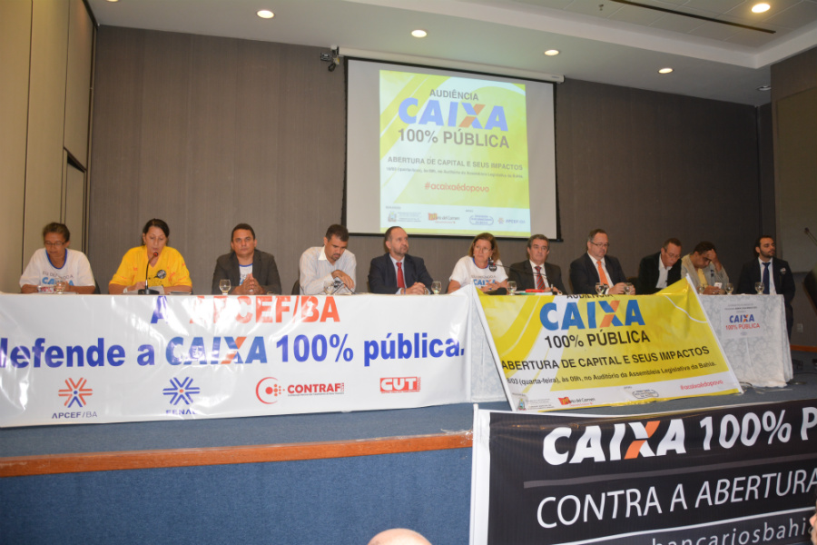 Reunindo representantes do governo do Estado, movimentos populares e dos bancários, a Comissão de Desenvolvimento Urbano da Assembleia Legislativa, presidida pela deputada Maria del Carmen (PT), em parceria com a Bancada do PT na AL, promoveu, ontem a audiência “Caixa 100% Pública: abertura de capital e seus impactos”, contando com ...