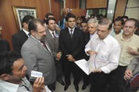 O presidente da Assembleia Legislativa, deputado Marcelo Nilo (PSDB), recebeu das mãos do presidente da União dos Municípios da Bahia (UPB), Roberto Maia, prefeito de Bom Jesus da Lapa, um documento com quatro reivindicações relacionadas com a administração estadual que será entregue pessoalmente, ainda esta semana, ao governador Jaques Wagner. ...