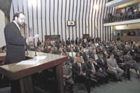 80 ANOS DE ACM "Teve política n´alma e fez dela sua paixão" Um dos proponentes da sessão especial, o líder da minoria Gildásio Penedo (DEM) foi o primeiro a falar e destacou a longa biografia de ACM e sua força política. Ele começou afirmando que a Assembléia Legislativa se unia ...