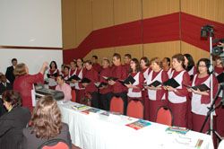 A apresentação do coral da Assembléia, formado por funcionários ativos e inativos da Casa, foi muito elogiada. Foram cantadas as canções Boiadeiros, Andança e Você Já Foi à Bahia?, sob a regência de uma das fundadoras do coral, Myrian Fontal. O coral já tem 25 anos de atividade, contando hoje ...