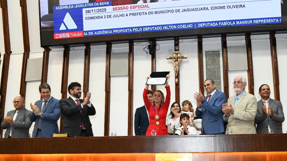 A Assembleia Legislativa da Bahia (ALBA) entregou, em uma concorrida sessão especial, na tarde desta quinta-feira (6), a Comenda 2 de Julho à prefeita de Jaguaquara, Edione Oliveira. O Plenário Orlando Spínola, ocupado por diversos prefeitos, vereadores, secretários municipais e lideranças políticas da região do Vale do Jequiriçá, foi tomado ...