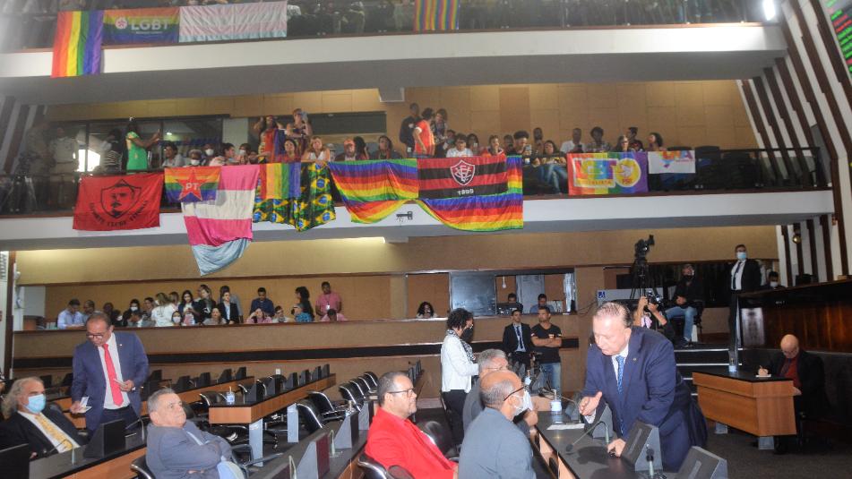 Apesar da dispensa de formalidades regimentais acordada entre os líderes da maioria, deputado Rosemberg Pinto (PT), e da oposição, Sandro Régis (UB), para a votação do Projeto de Lei 22.845/2018, de autoria do deputado Zó (PCdoB), as galerias lotadas de representantes do movimento LGBTQIA+ saíram frustrados com o revés em ...
