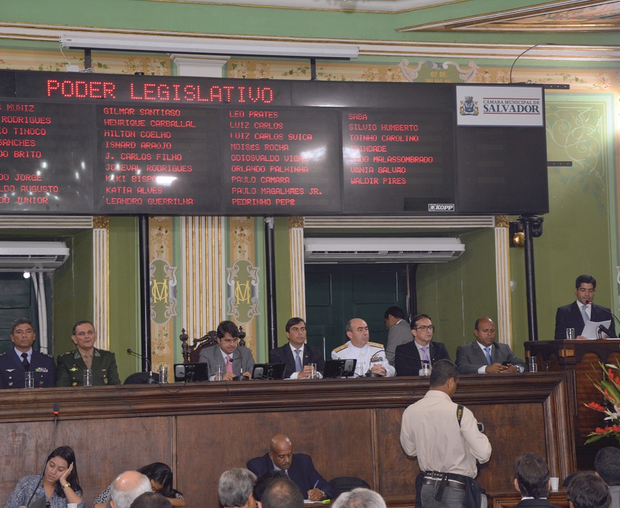 O deputado Marcell Moraes (PV) representou ontem o Legislativo baiano da abertura do 4º Período Legislativo da 17ª Legislatura na Câmara Municipal, em sessão solene dirigida pelo presidente da Casa, vereador Paulo Câmara (PSDB), no Plenário Cosme de Farias. O prefeito de Salvador, ACM Neto, fez a leitura da mensagem ...